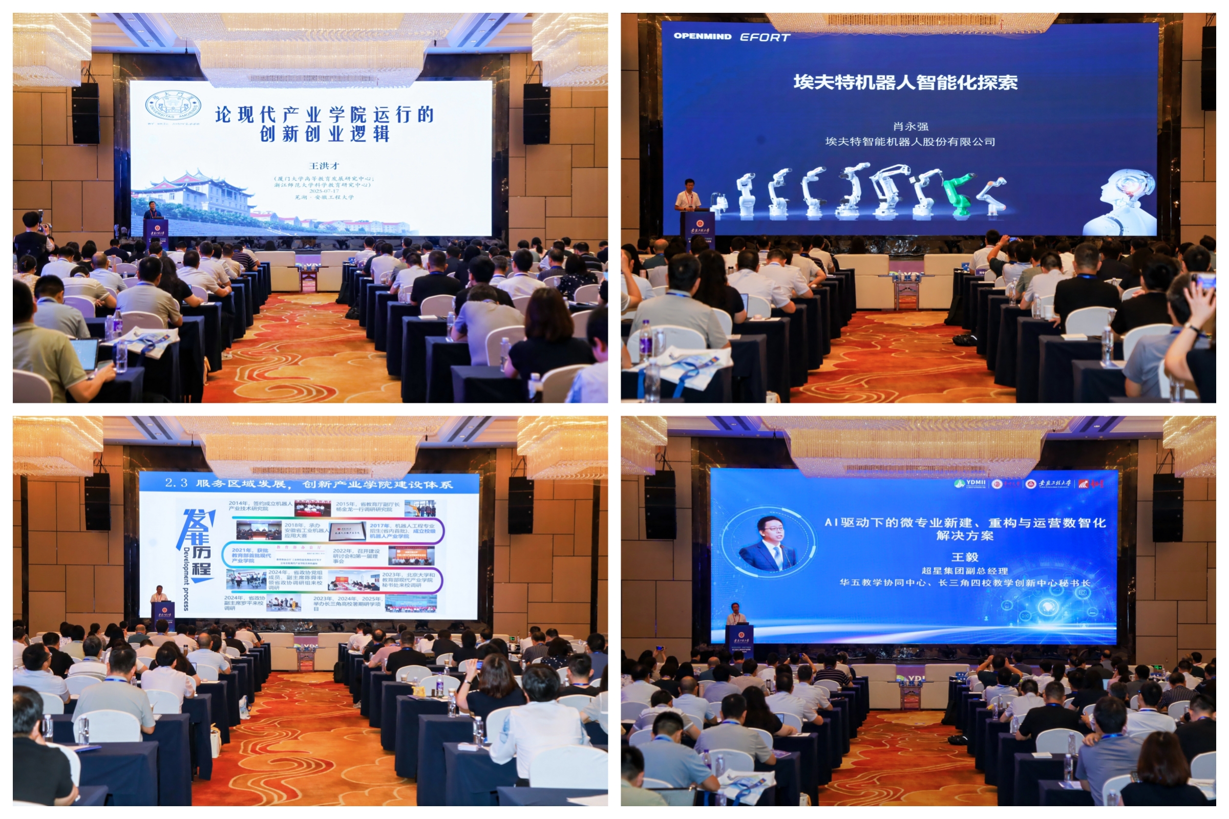 厦门大学王洪才教授、埃夫特智能机器人股份有限公司肖永强总工程师、超星泛雅集团王毅副总经理分别作题为《论现代产业学院运行的创新创业逻辑》《埃夫特机器人智能化探索》《AI 驱动下的微专业新建、重构与运营数智化解决方案》的主旨演讲。与会专家就课程设计、校企协同、实践实训、AI赋能、机制创新等现代产业学院建设的关键议题进行交流研讨。
