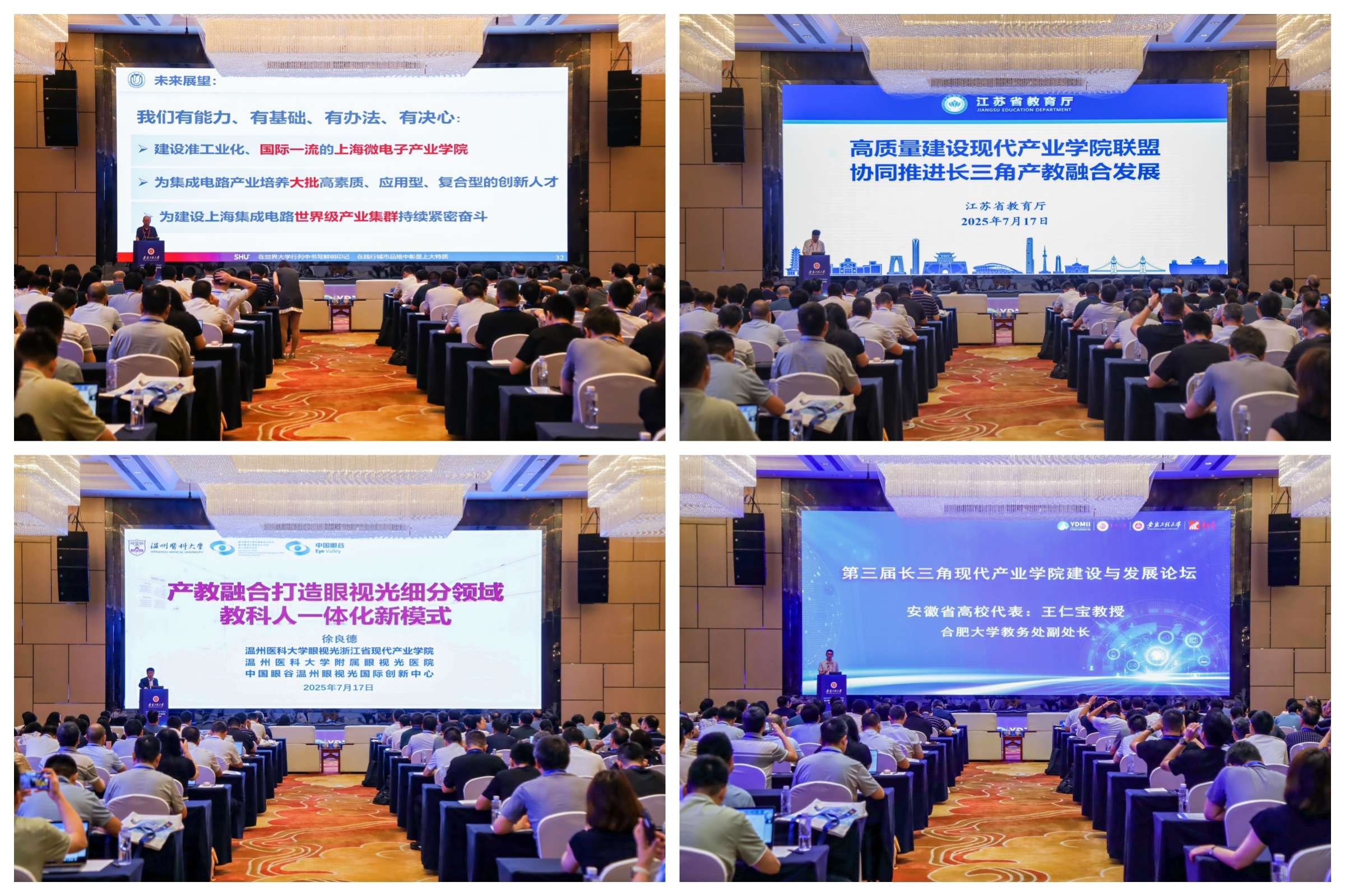 本网讯 7月16日至18日,由长三角现代产业学院协同育人联盟等主办、我校承办的第三届长三角现代产业学院建设与发展论坛在芜湖举行,本届论坛的主题为“智领范式革新·赋能产教融合”。来自长三角三省一市的高校、专家和企业家代表共计300余人齐聚一堂,共同探索在人工智能时代现代产业学院产教融合新路径。