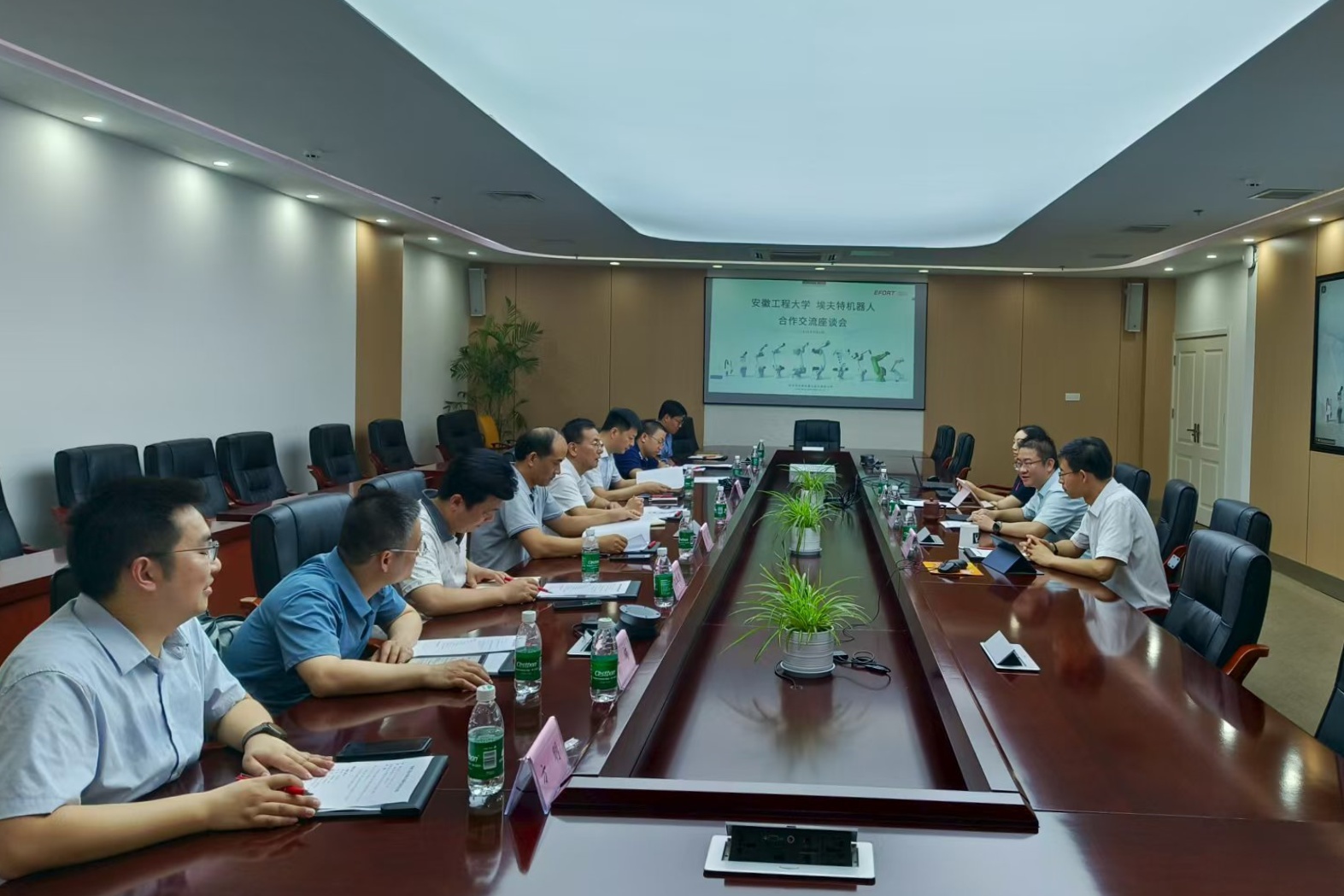 本网讯 8月9日,校党委副书记、校长黄友锐,校党委常委、副校长凤权带队赴芜湖市埃夫特智能装备股份有限公司开展交流合作,相关部门负责人参加了交流座谈。